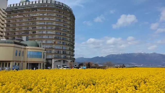 琵琶湖春色 琵琶湖春色琵琶湖湖畔菜の花畑が満開!比良連峰からの春の風に一気に春色が満開!春色の比良山麓プライベートなキャンプ場HillSide南比良campingclub皆様のご利用を心よりお待ち致しております~#琵琶湖…