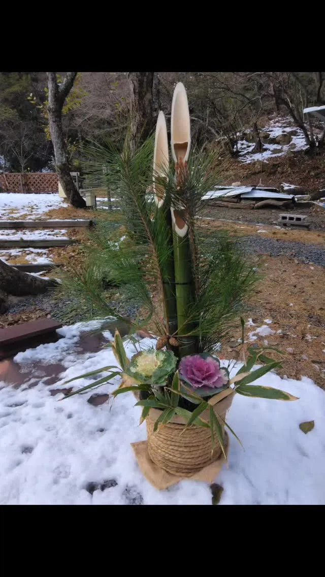 謹賀新年 謹賀新年門松飾りを受け付けに…竹、松、熊笹比良山麓の自然の素材を生かして新しいキャンプ場の門出を共にお祝い下さいませ~HillSide南比良campingclub皆様のNewyearCampのご利用お待ち致しております~…